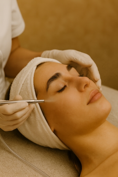 Oxybrazja z infuzją tlenową to innowacyjny, bezdotykowy zabieg łączący oczyszczanie i intensywne odżywienie skóry. Podczas oxybrazji strumień soli fizjologicznej pod ciśnieniem delikatnie złuszcza martwy naskórek, usuwa zanieczyszczenia i odblokowuje pory, jednocześnie nawilżając i łagodząc skórę. Następnie infuzja tlenowa dostarcza w głąb skóry skoncentrowane składniki aktywne, poprawiając jej dotlenienie, jędrność i koloryt. Efektem jest cera gładka, promienna i odświeżona, bez podrażnień i okresu rekonwalescencji. Zabieg polecany jest dla każdego typu skóry, również wrażliwej, a jego rezultaty widoczne są od razu po zakończeniu.